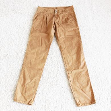 Broek met zakken aan de voorzijde. De broek heeft lussen bij de taille om aan te rijgen, de broek is met een rits en knopen dicht te maken.