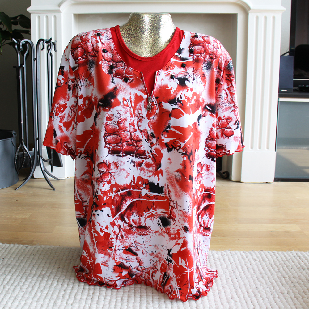 Mooie top met bloemen print van het merk Deluxe Stars. De top heeft een ronde hals en aan de onderzijde iets uitlopend.