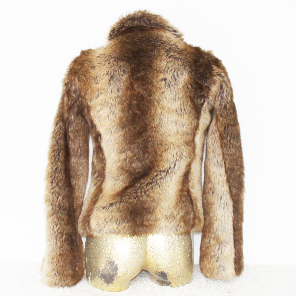 Fake fur jas van het merk Hook. De jas heeft weggewerkte zakken aan de voorzijde en is met druk knopen dicht te maken.