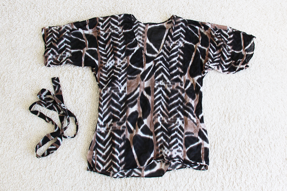 Truitje van het merk Hugo Boss met mooie print. Het truitje is met bijhorende band te tailleren. Het truitje is gemaakt van een fijne, lichte stof.