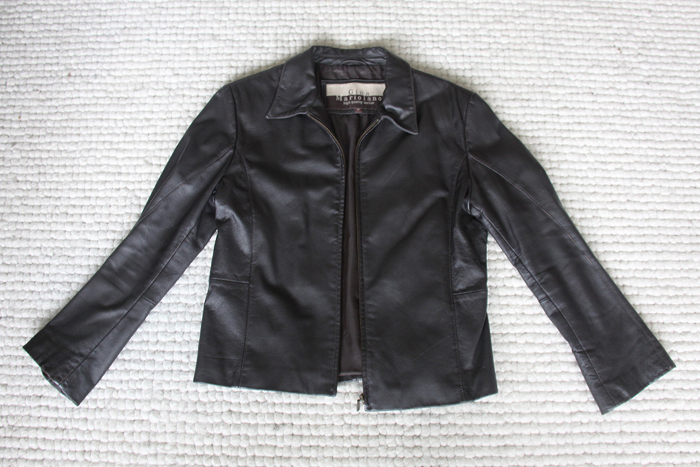 Soepele leren jas van het merk Gina Mariolano met weg gewerkte binnenzak. De jas is met een rits dicht te maken.
