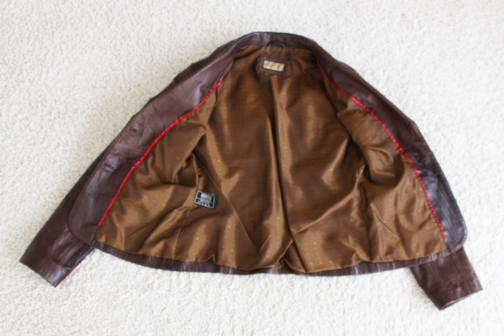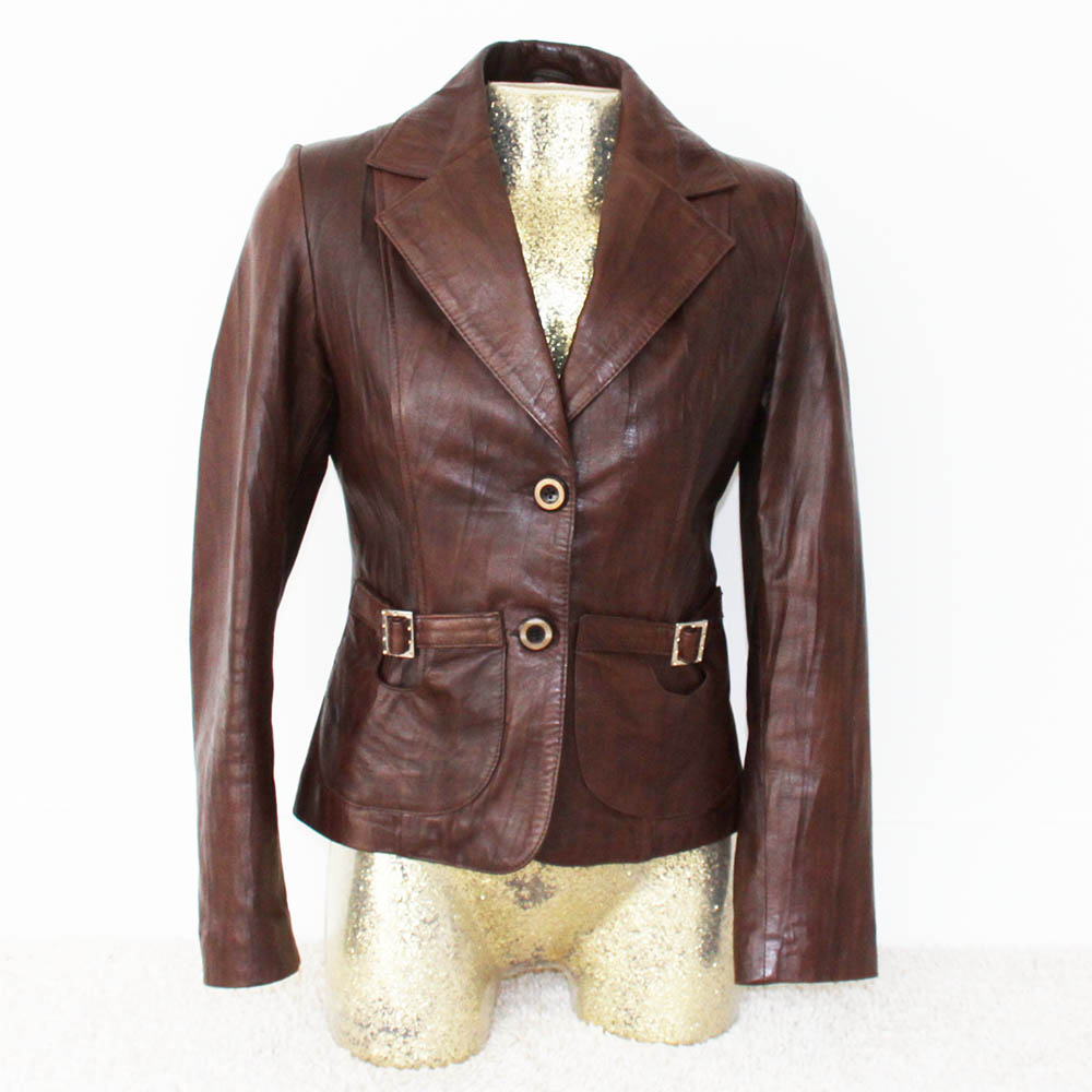 Soepele leren jas van het merk Verita met bewerkte zakken aan de voorzijde. De jas is met knopen dicht te maken.