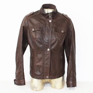 Soepele leren jas van het merk Yessica met borst zakjes en rits zakken. De jas is met een rits en druk knopen dicht te maken.