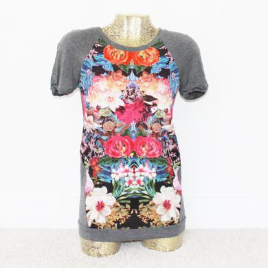 Shirtje van het merk Mooia met bloemen print aan de voorzijde. De top is gemaakt van een fijn rekbaar materiaal.