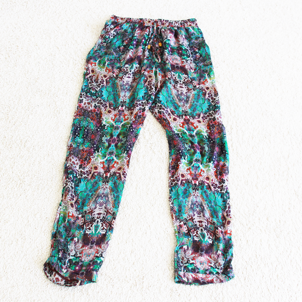 Broek van het merk Princess met mooie print. De bovenzijde van de broek is rekbaar, de broek is gemaakt van een luchtig, zacht, glad materiaal. De broek is met een bijhorend lint samen te rijgen.