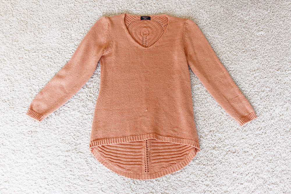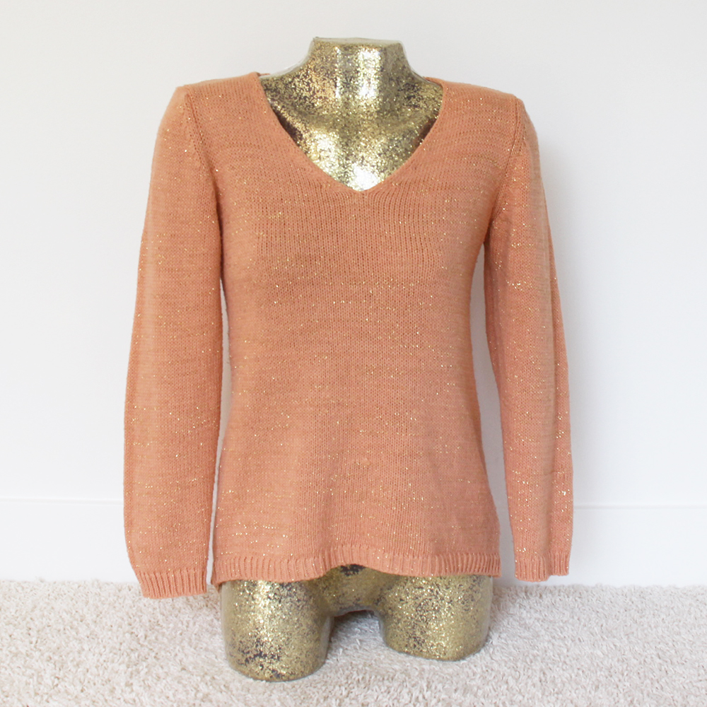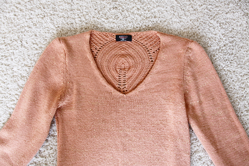 Truitje met mooie bewerking aan de achterzijde en ingeweven gouden details.